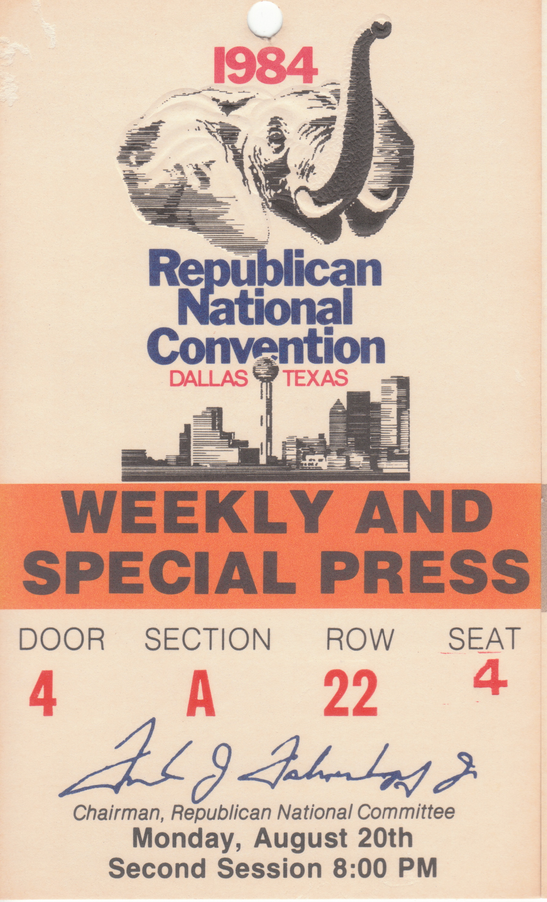 Our 1984 Republican Convention general press credential.